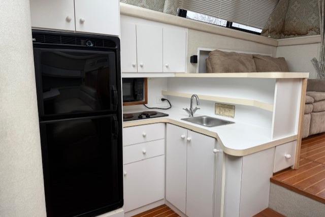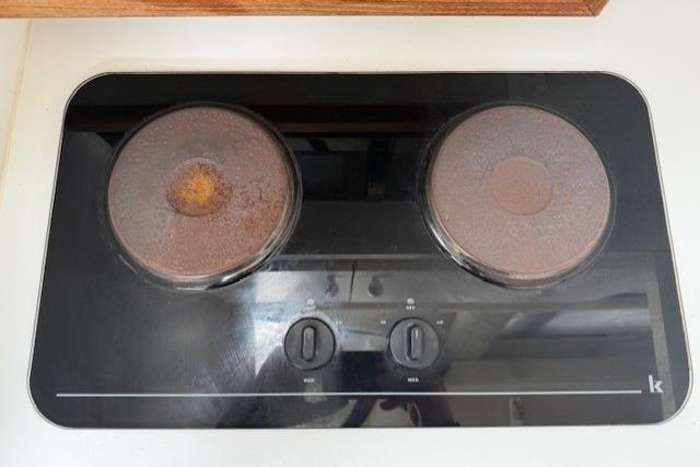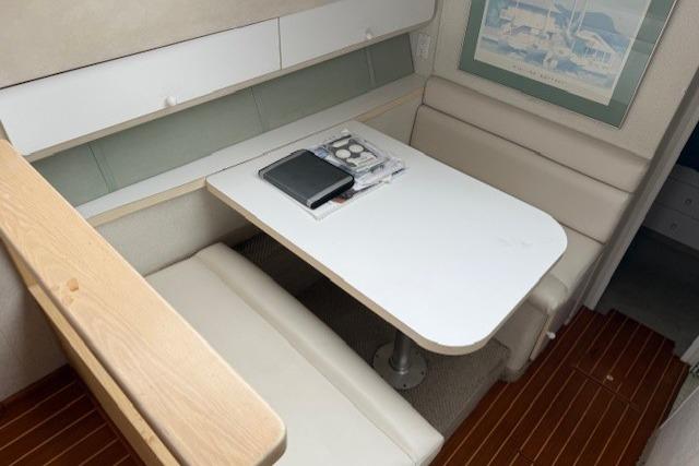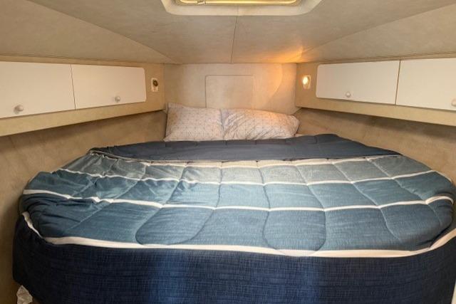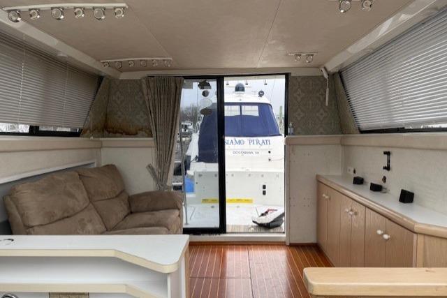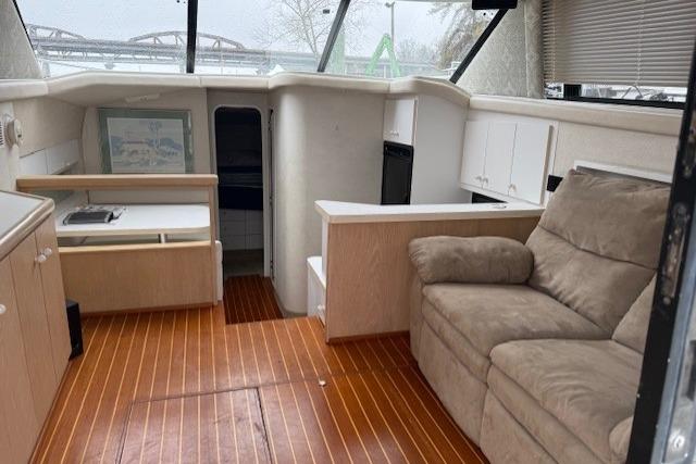 In the cabin there is AC/Heat, beautiful teak and holly hard wood floors, spacious galley with microwave, two burner cook top, large fridge and freezer. The head has a vacu flush, full vanity and separate shower, the stateroom there is a large centerline bed.