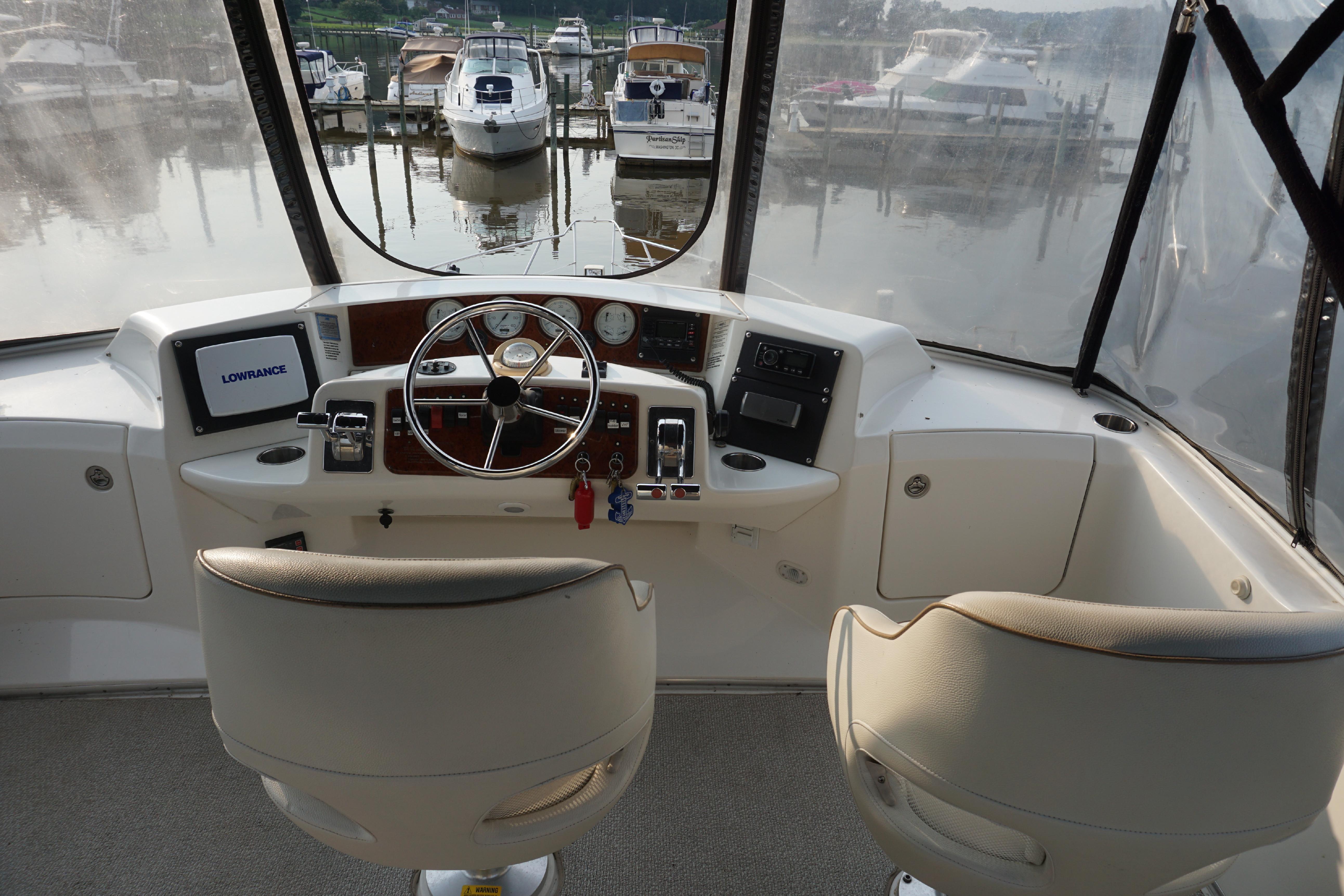 This is one of silverton's most popular models with molded stairs to the bridge an a 2 stateroom layout. This boat provides the best of fishing and cruising. When you walk in the spacious salon you have ample seating and an open floor plan. As you move forward there is a large galley with full size fridge. Forward of the galley you have a private bunk room and then separate head and separate shower before you enter the larger master.
