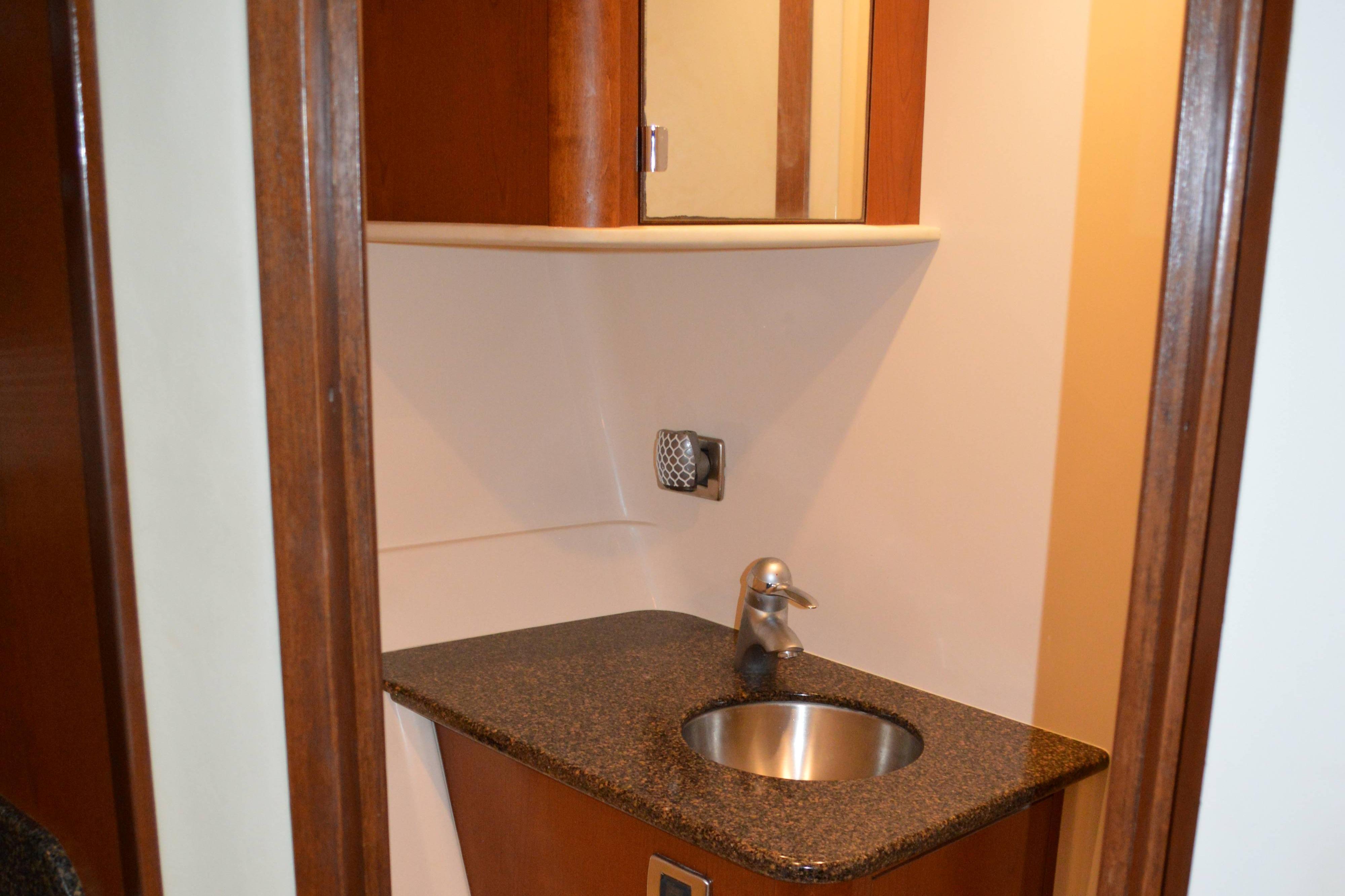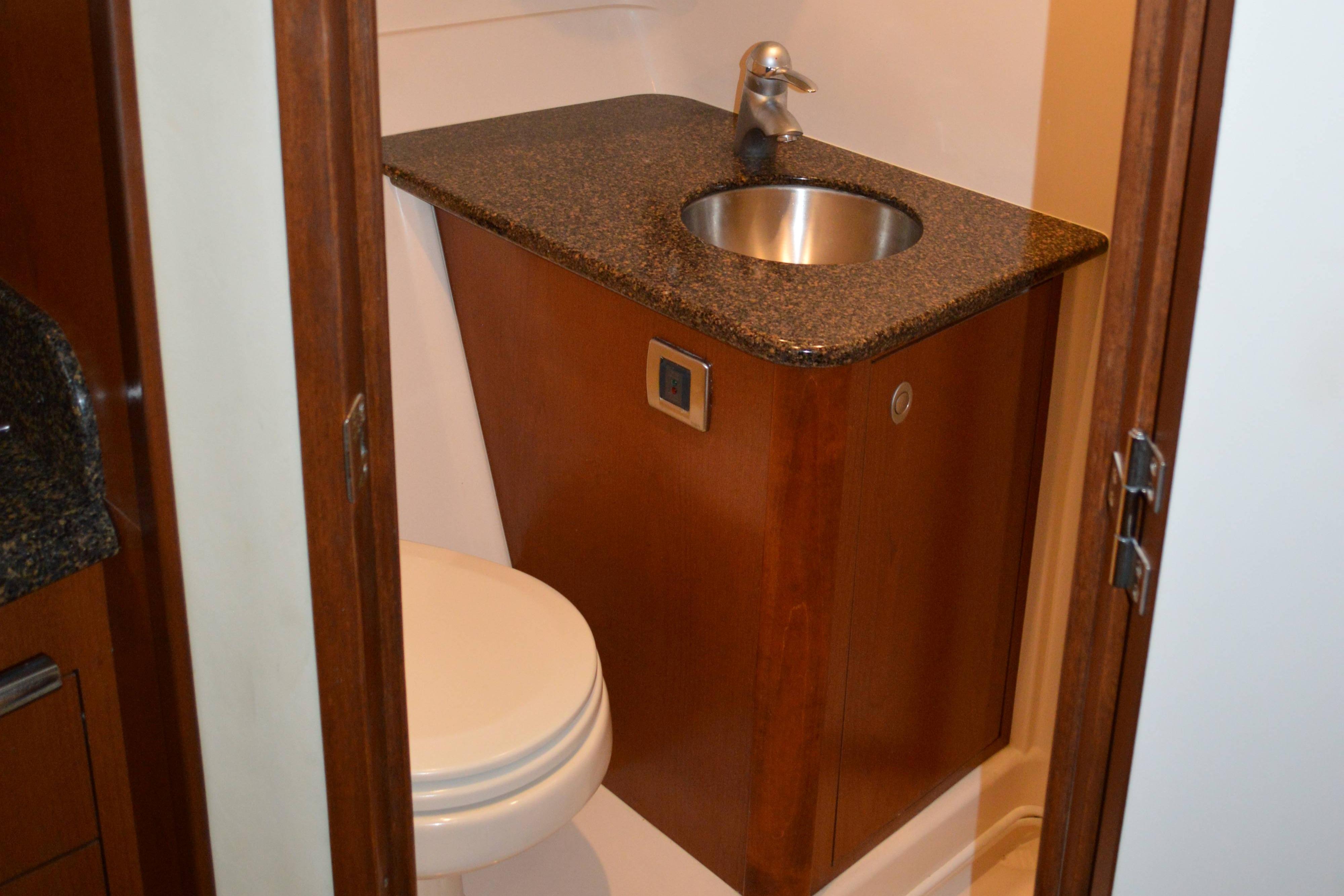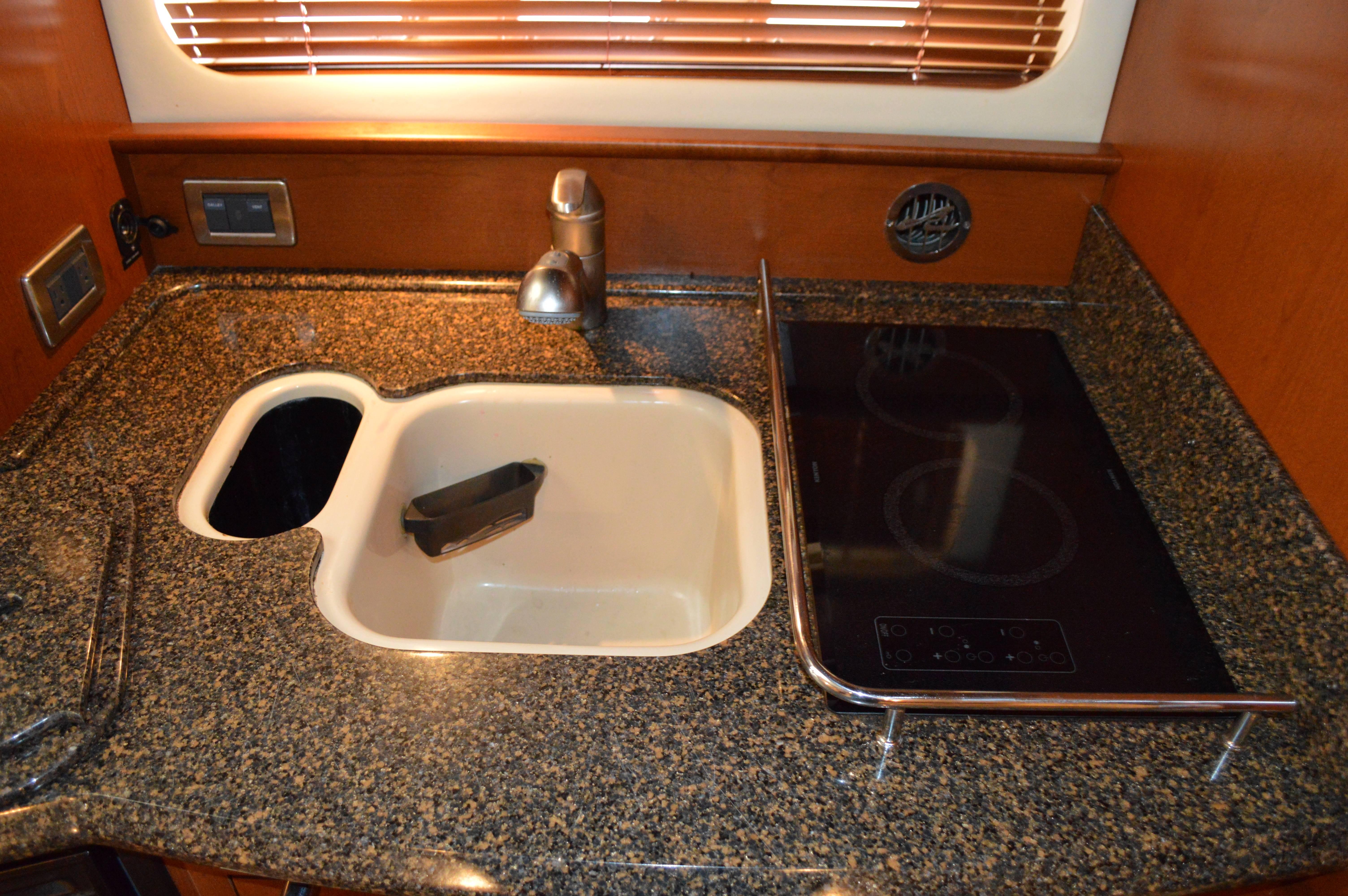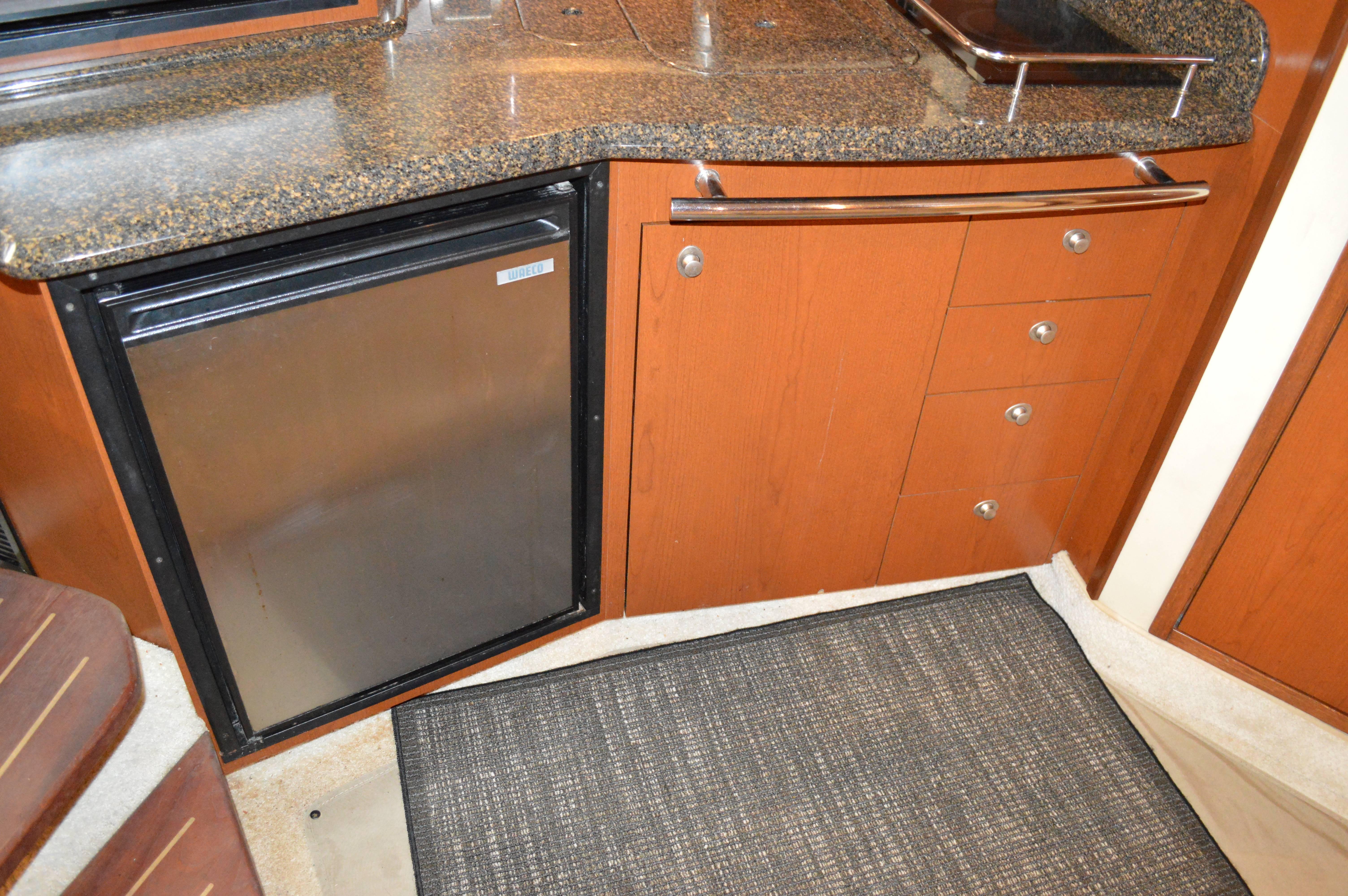 Powered by Mercury Marine MerCruiser Horizon 8.1 S SmartCraO DTS, 8.1 Liter and is equipped with Gen; Air; Bimini with Enclosure; Bow Thruster; Two (2) Raymarine E120 Radar, GPS, Depth; DSS; Upgrade Stereo; Cockpit Fridge; Sea Dek in Cockpit and on Swim Platform; Bow Sun Pads; Windlass; Cockpit TV; Cockpit Cover; Blue Hull.