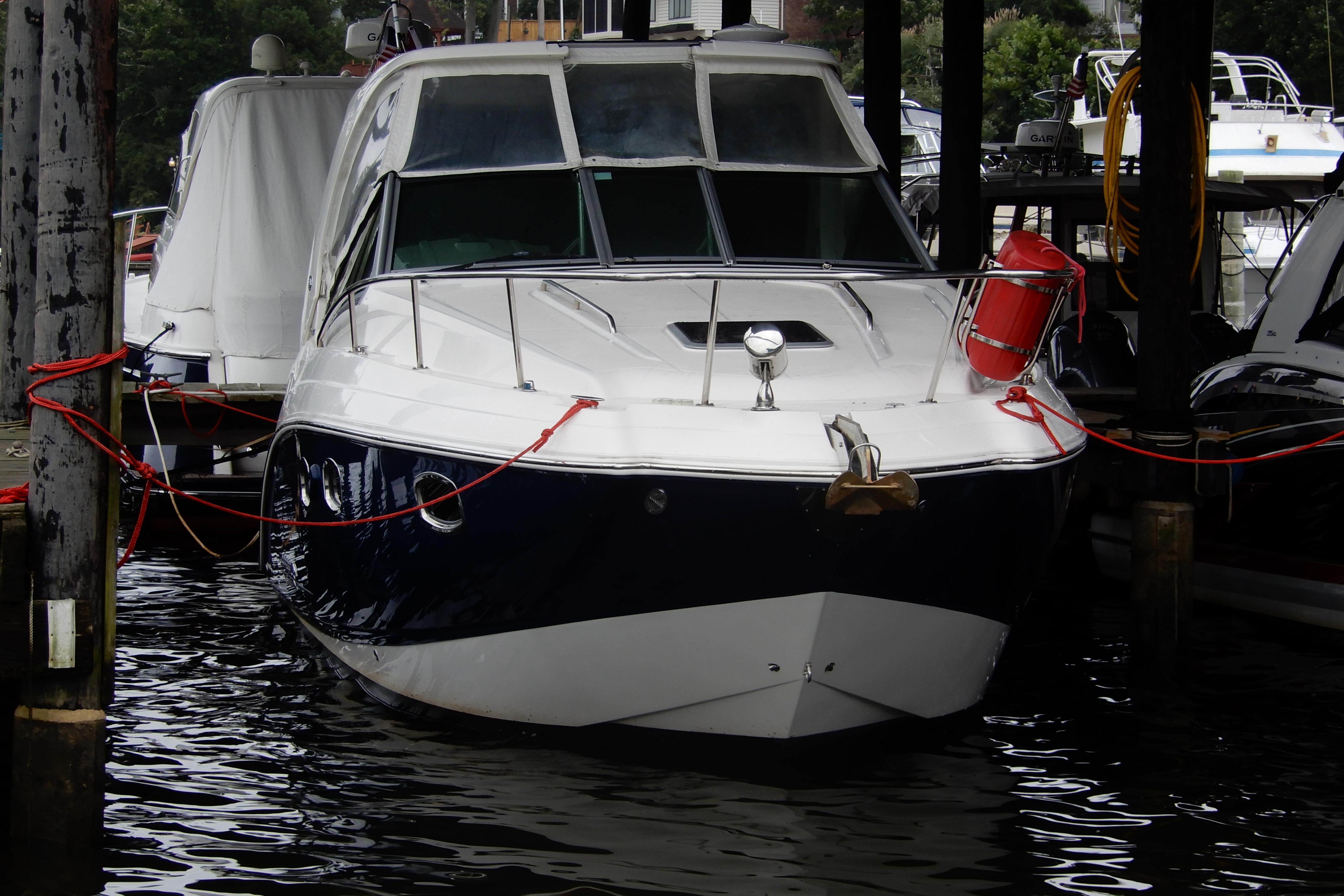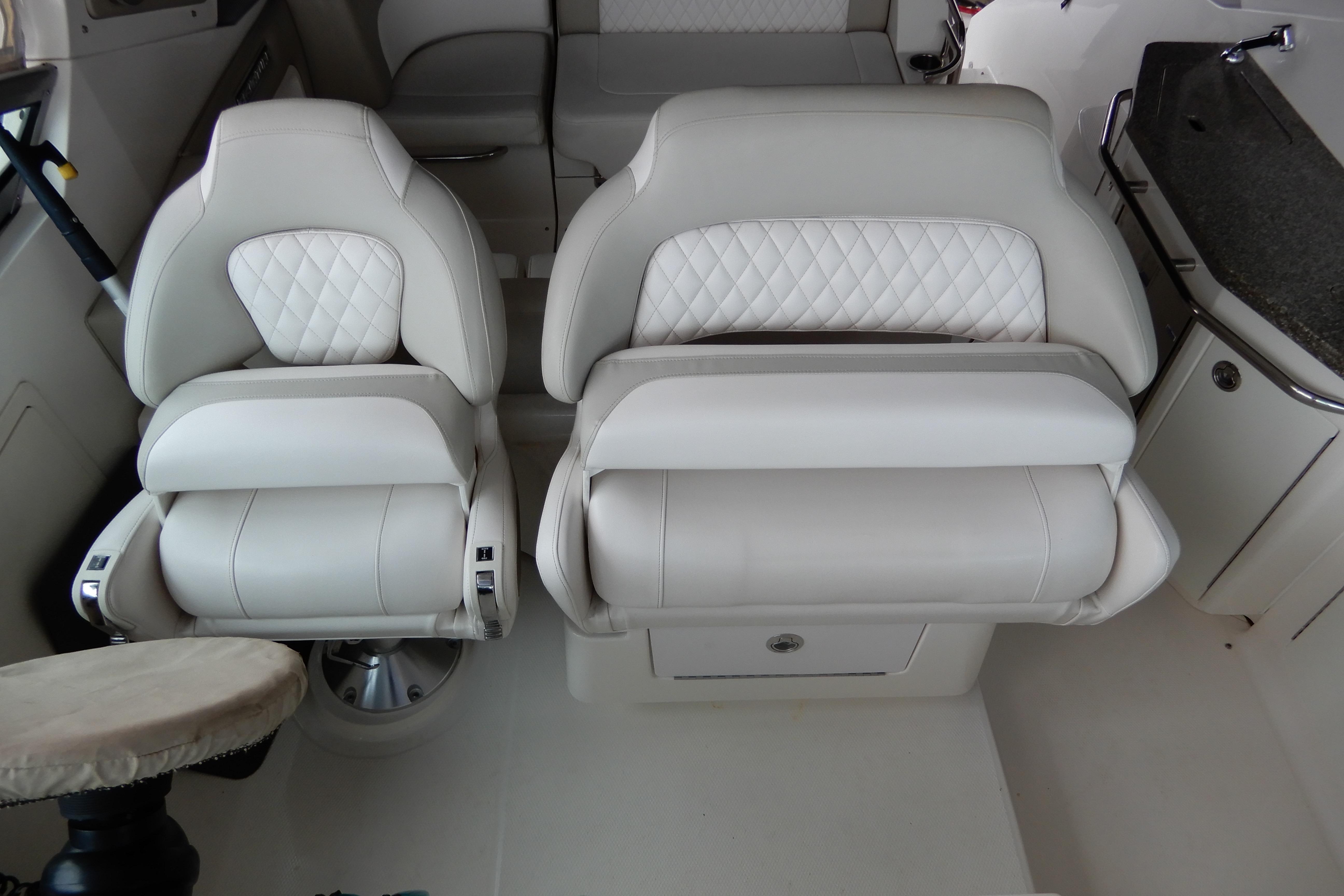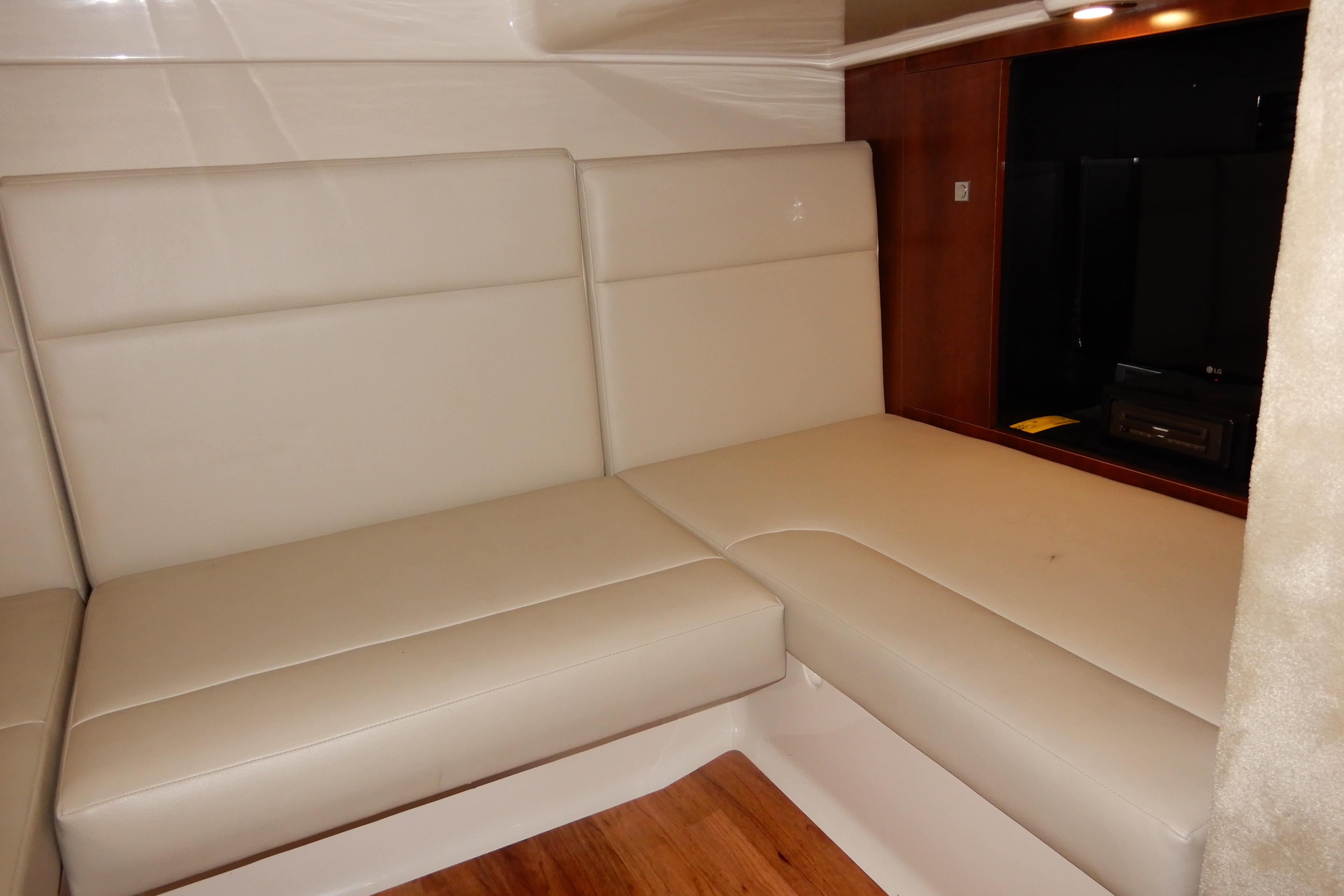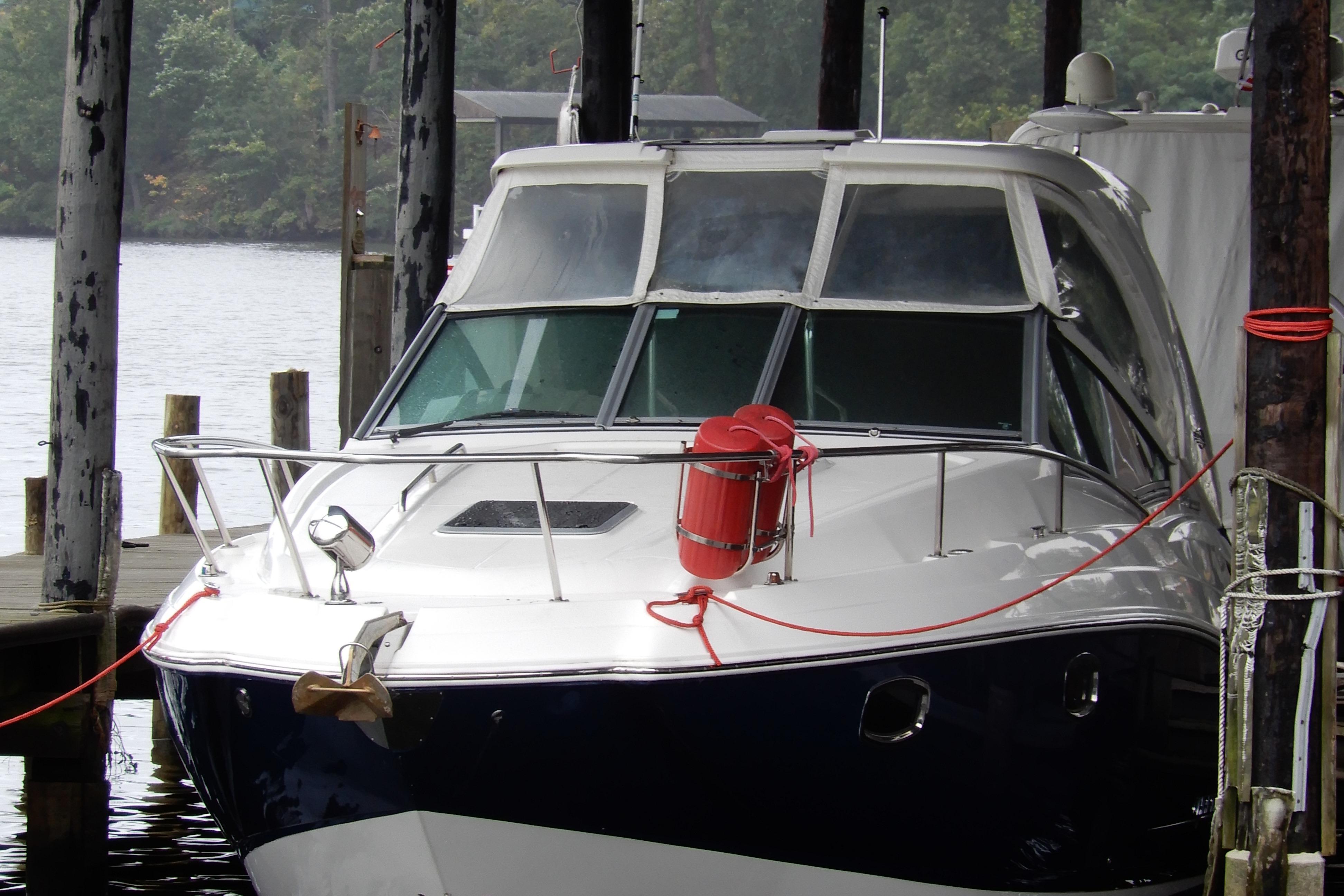 This spacious family cruiser, has ample seating on deck. Cockpit fridge, full camper canvas, at the helm there is GPS, Volvo digital gauges, joystick control and digital throttles. On deck, there is a windlass, and walk through windshield. In the cabin there are two separate sleeping areas, full head and full galley, AC/heat, and more.