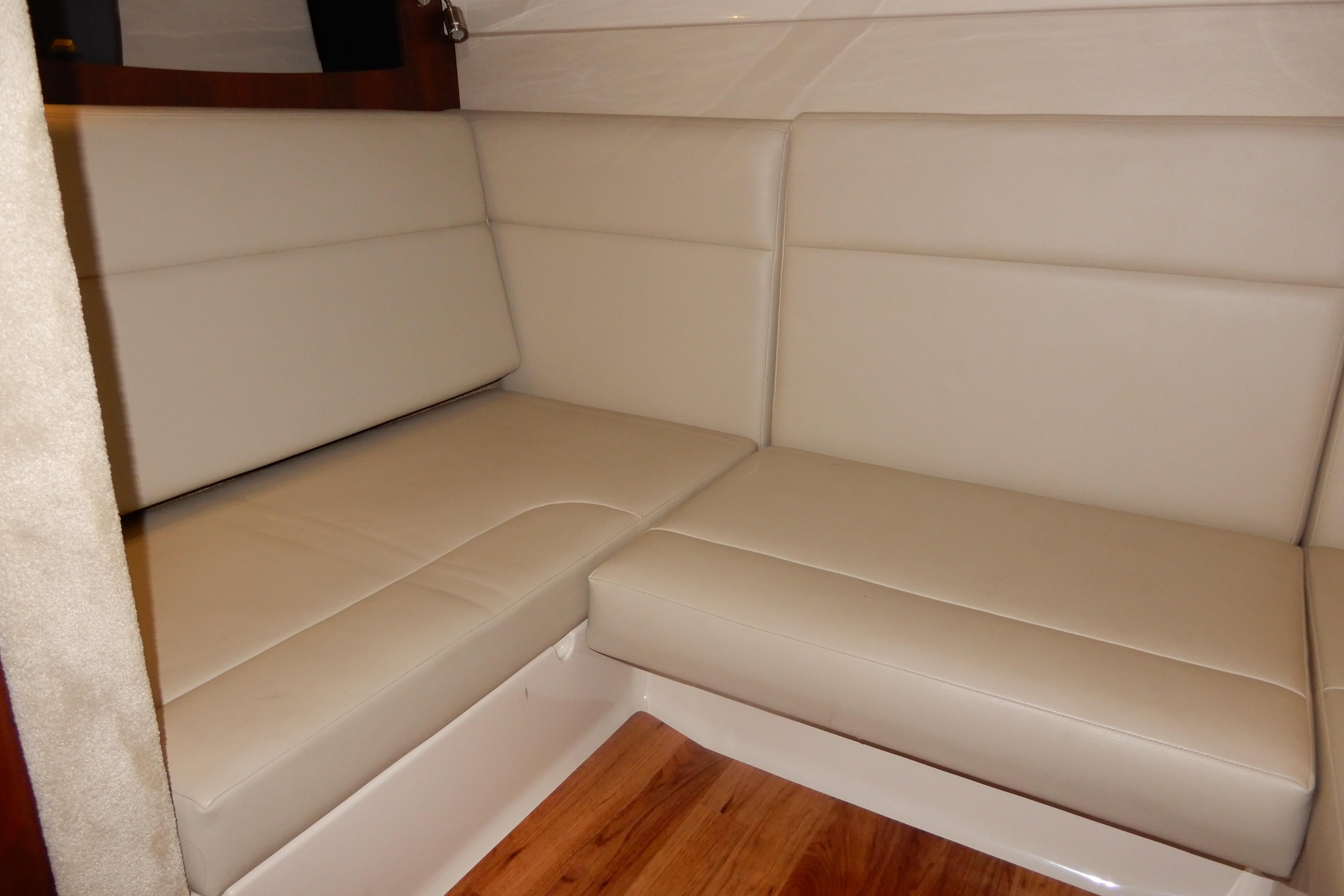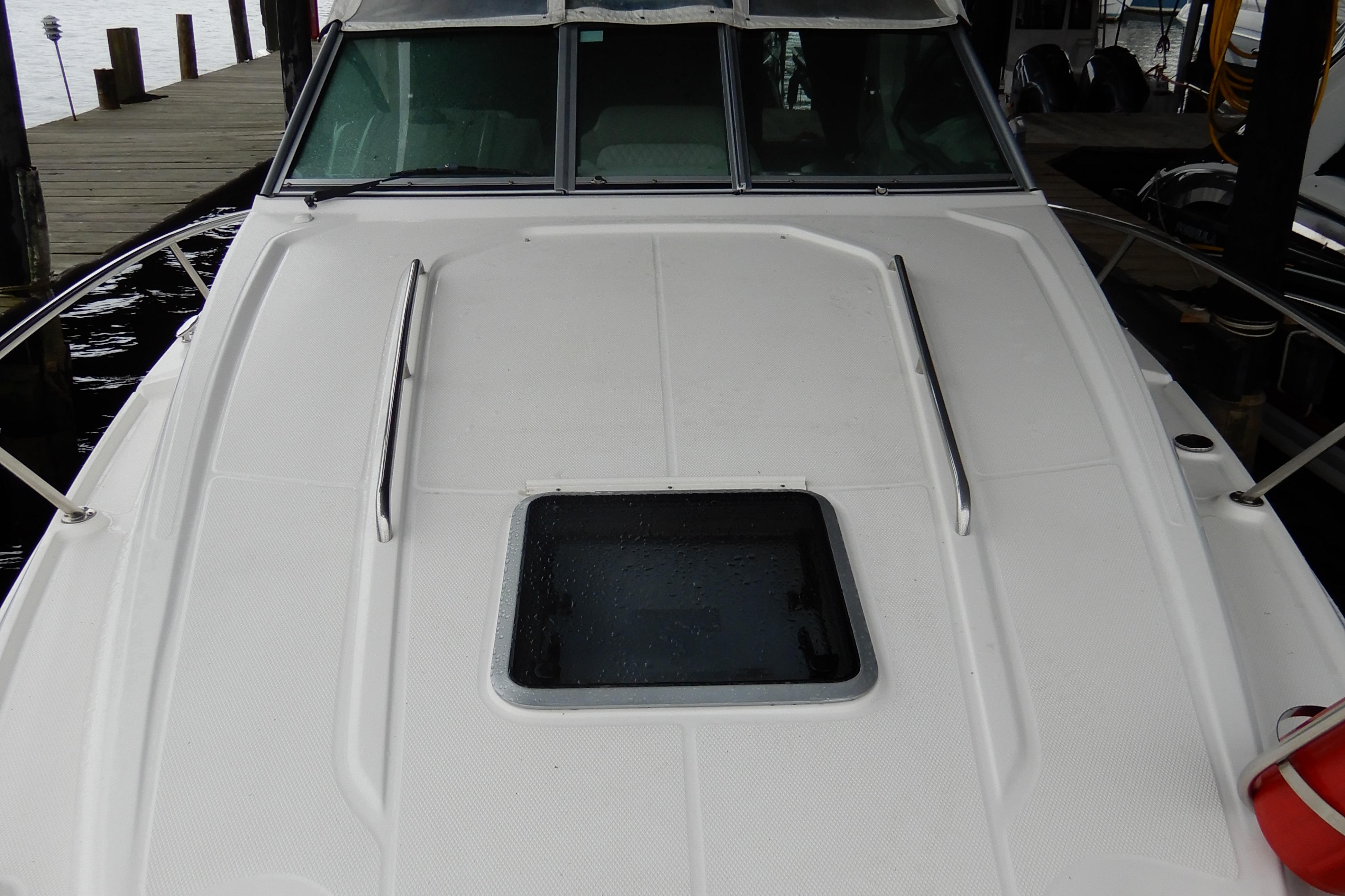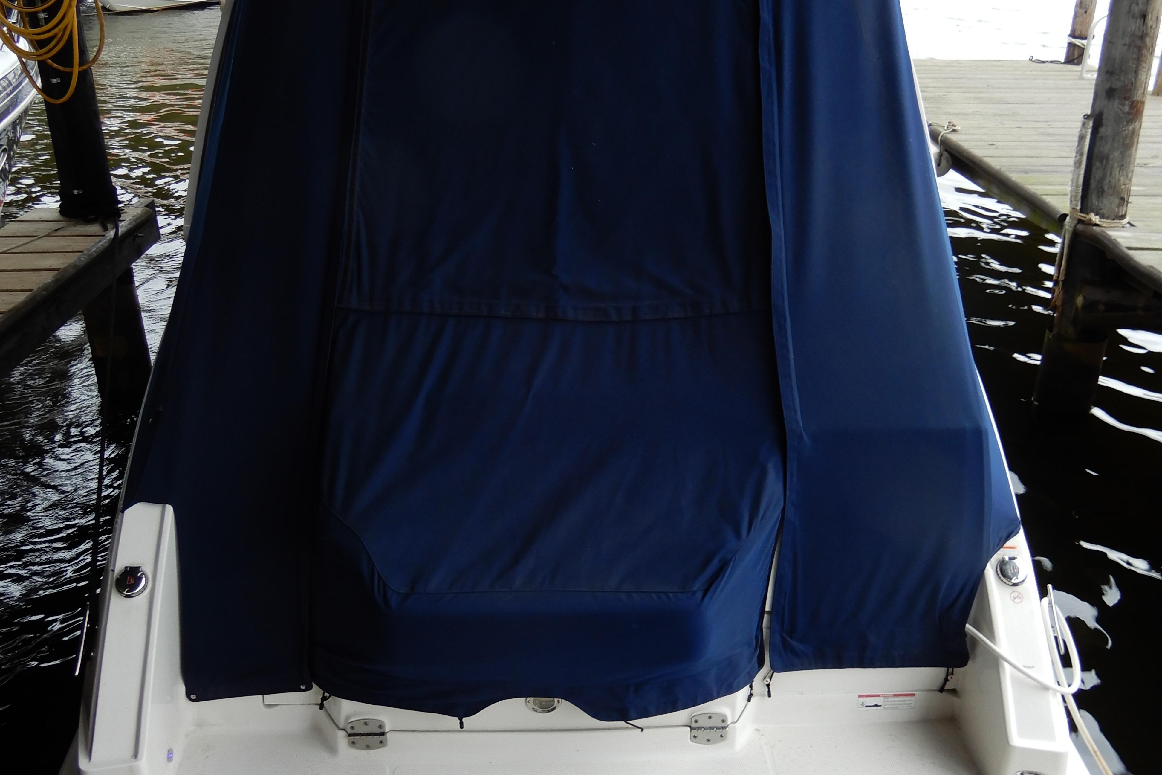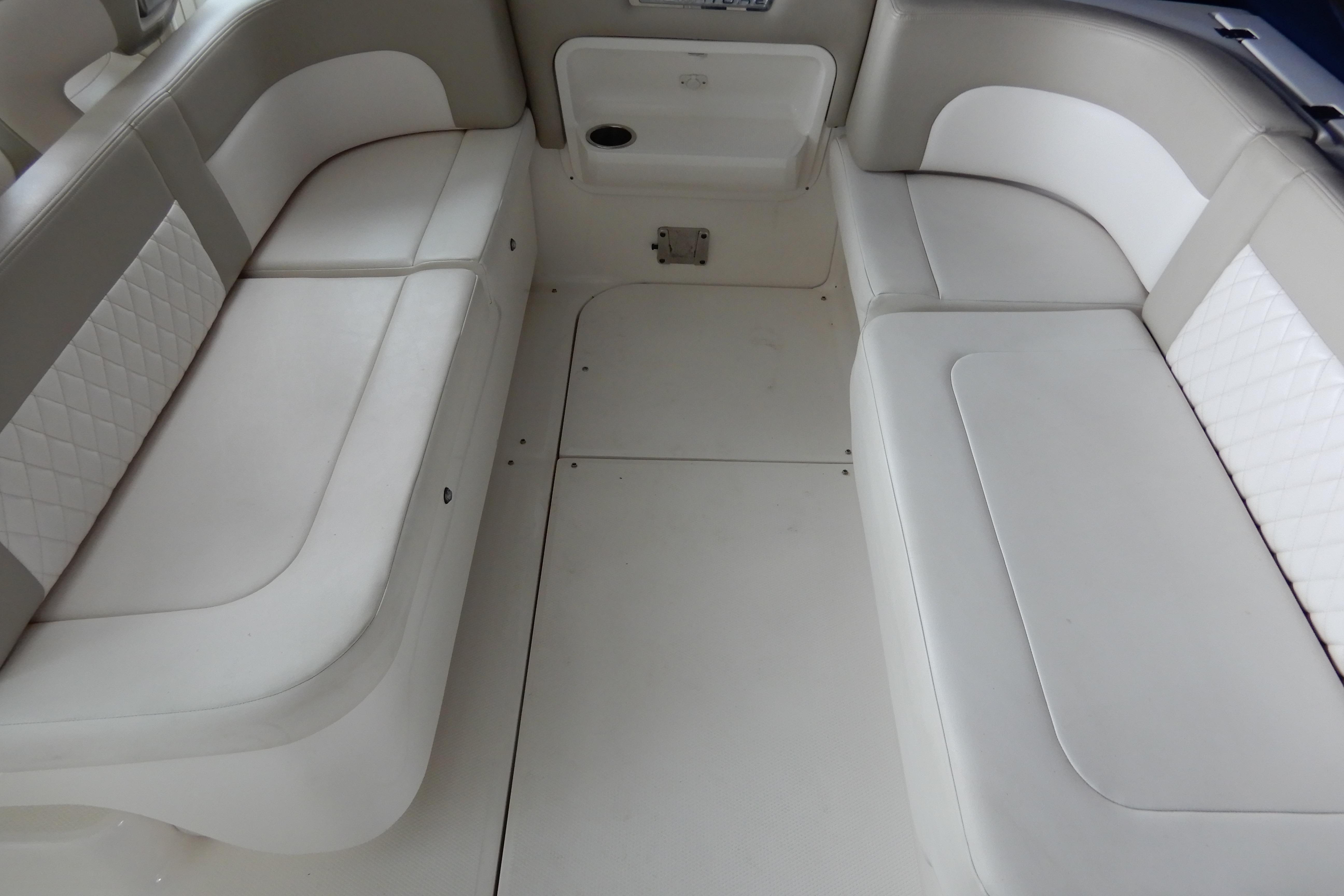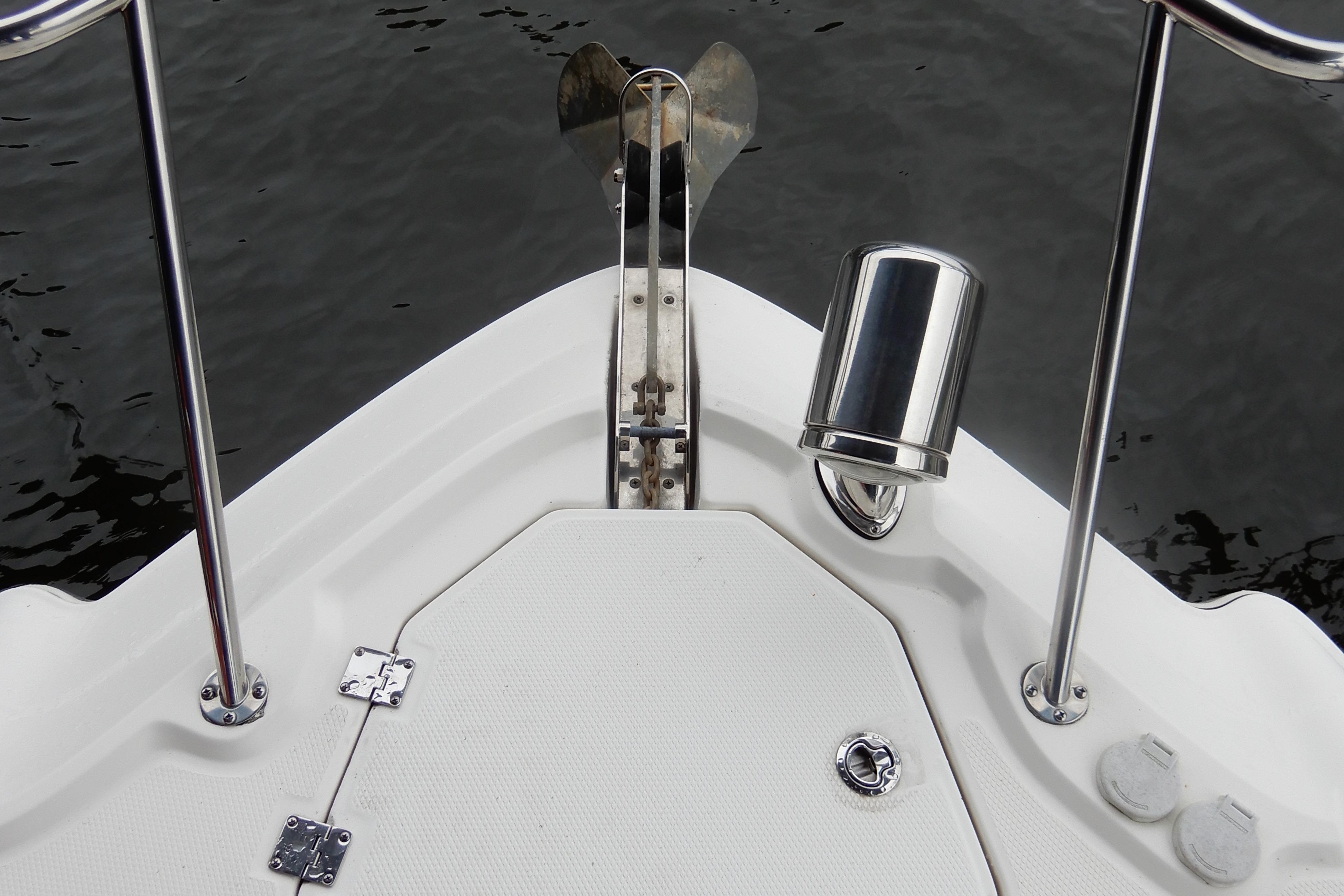 This spacious family cruiser, has ample seating on deck. Cockpit fridge, full camper canvas, at the helm there is GPS, Volvo digital gauges, joystick control and digital throttles. On deck, there is a windlass, and walk through windshield. In the cabin there are two separate sleeping areas, full head and full galley, AC/heat, and more.