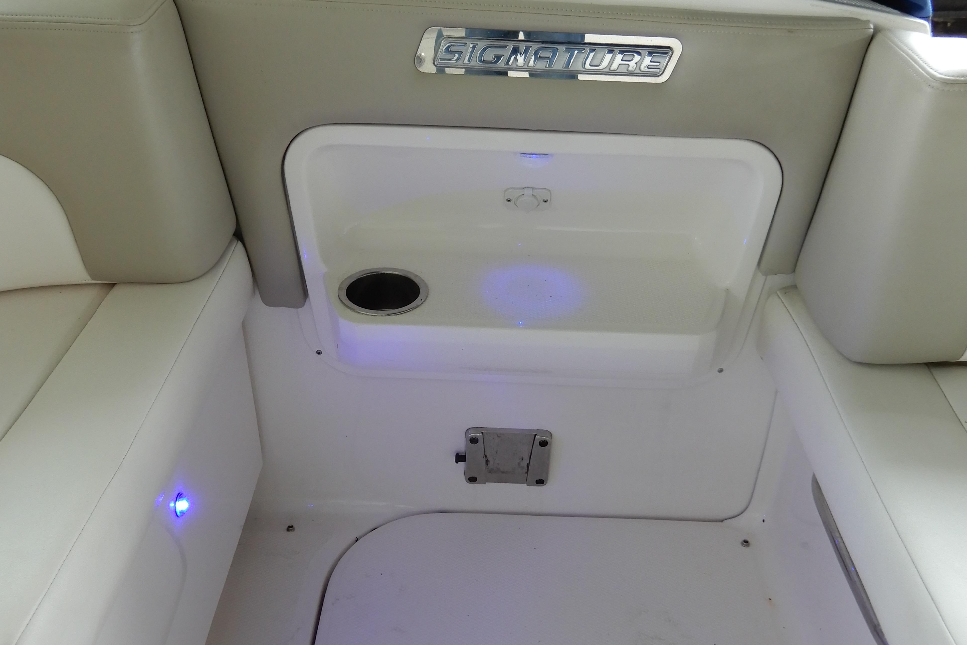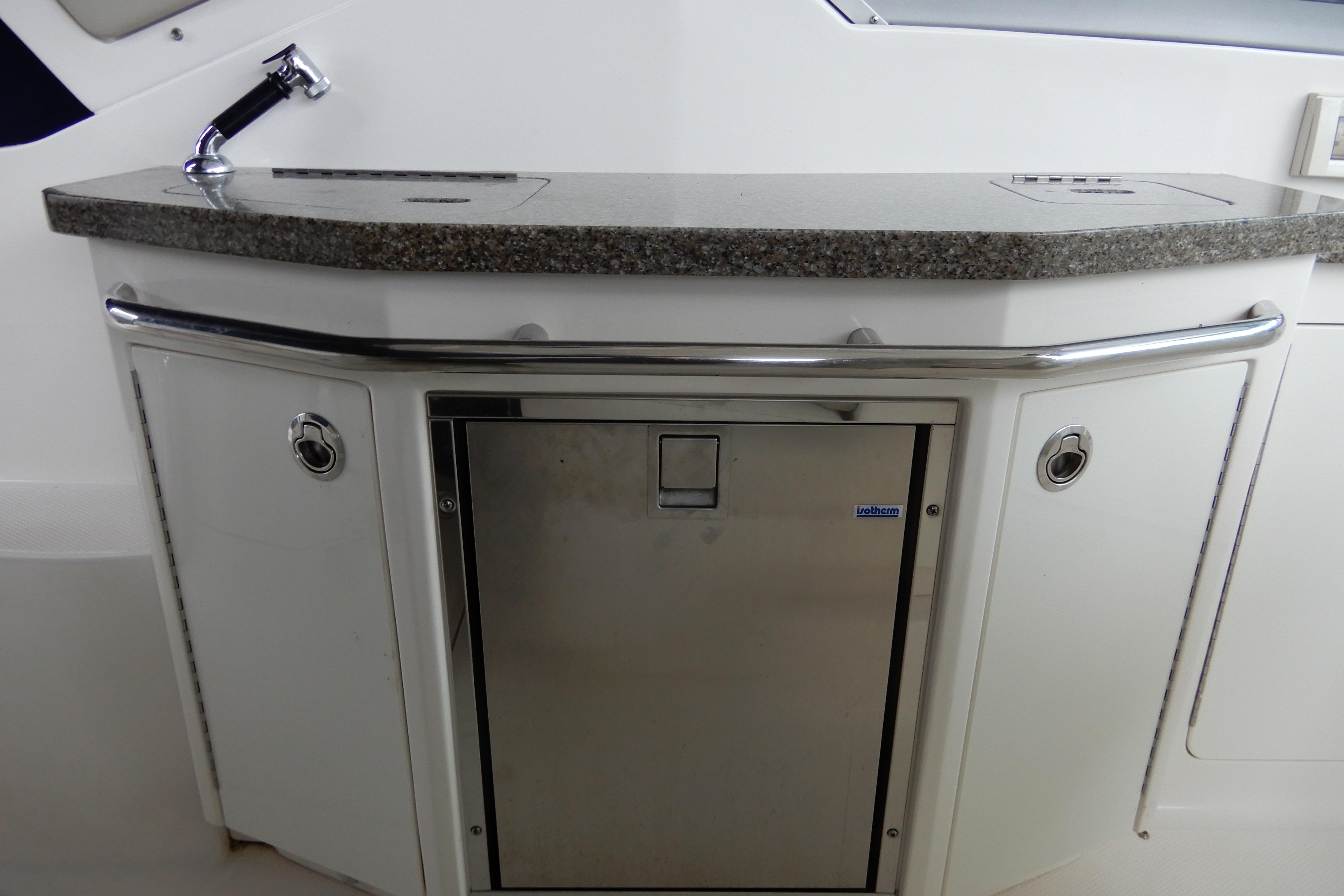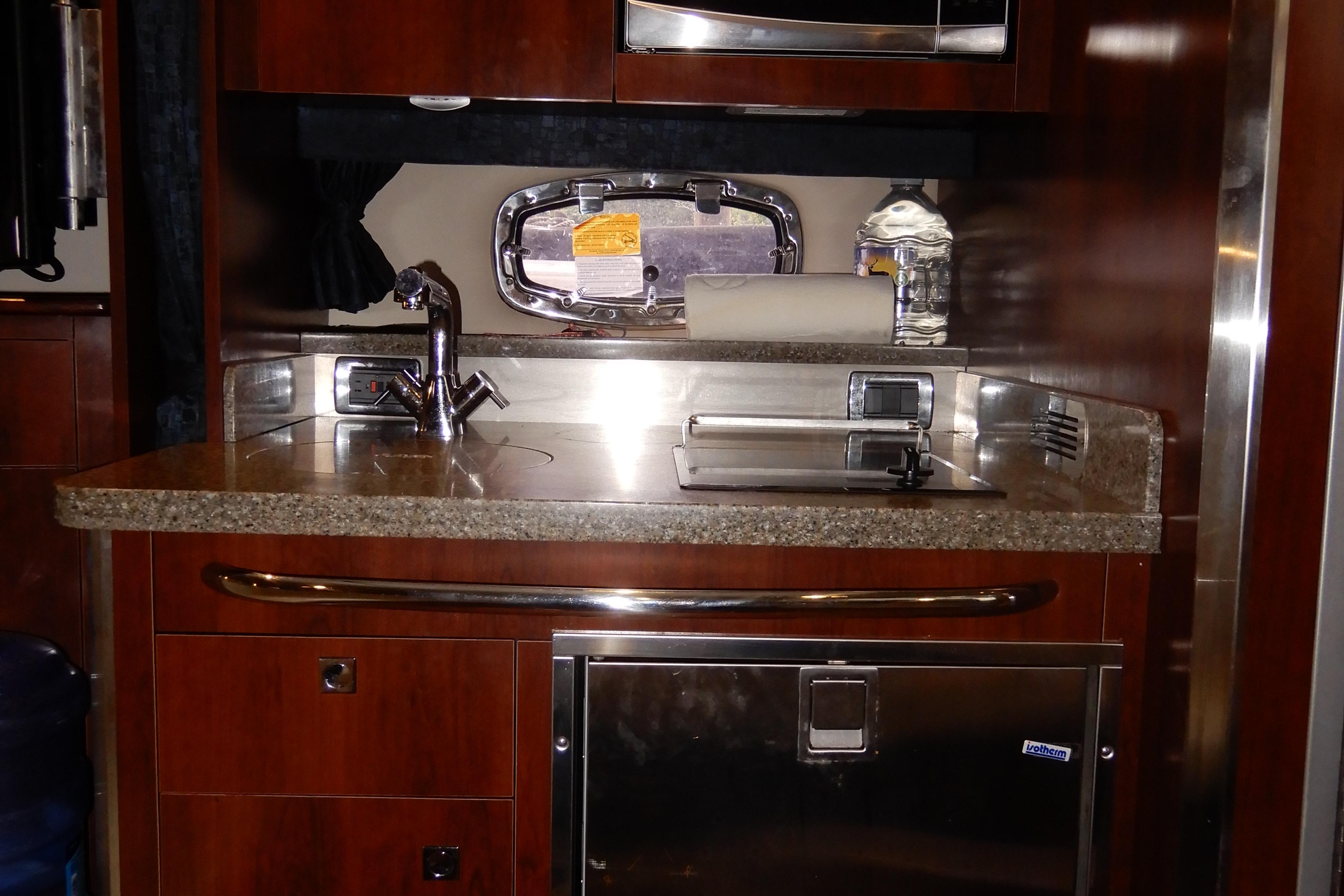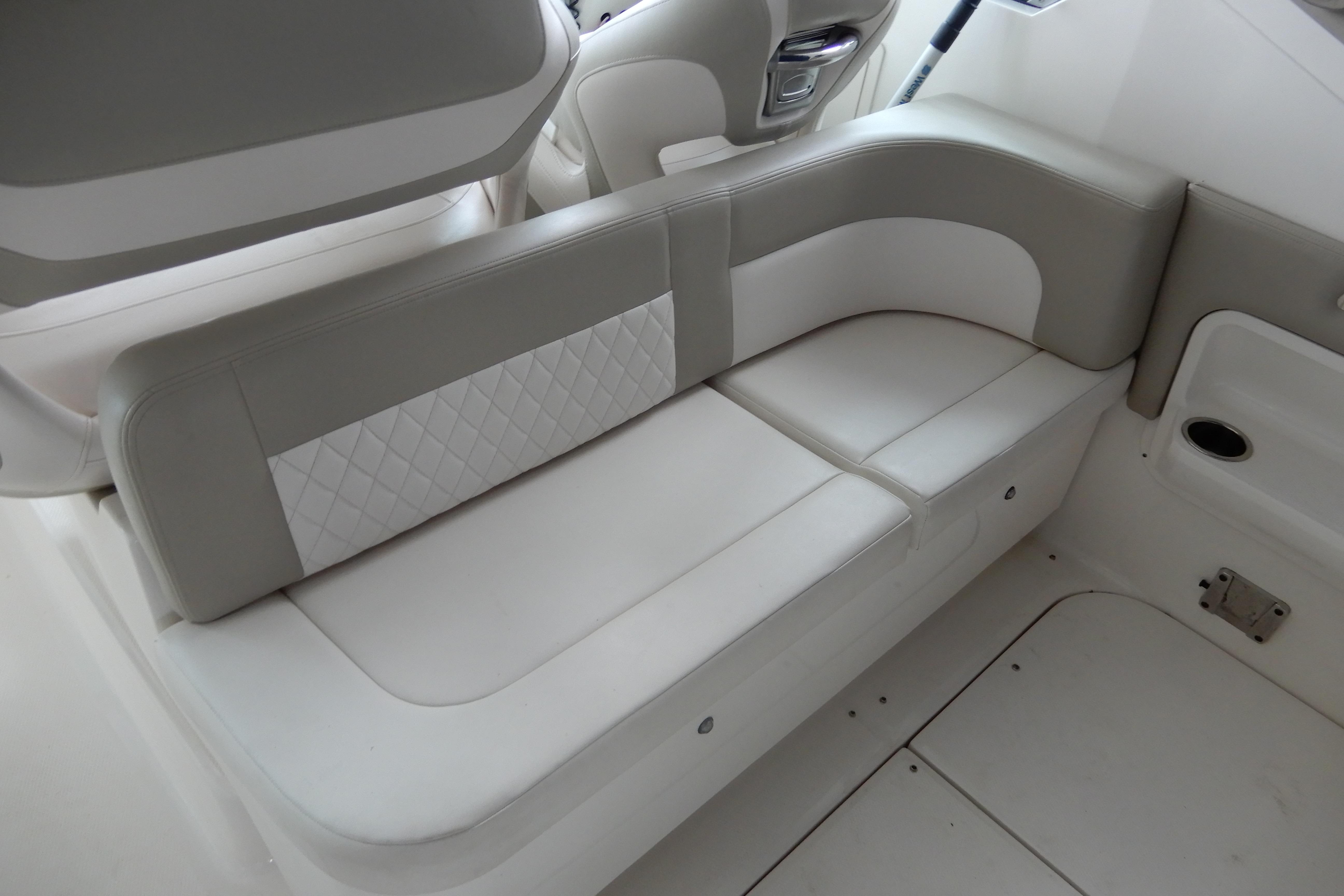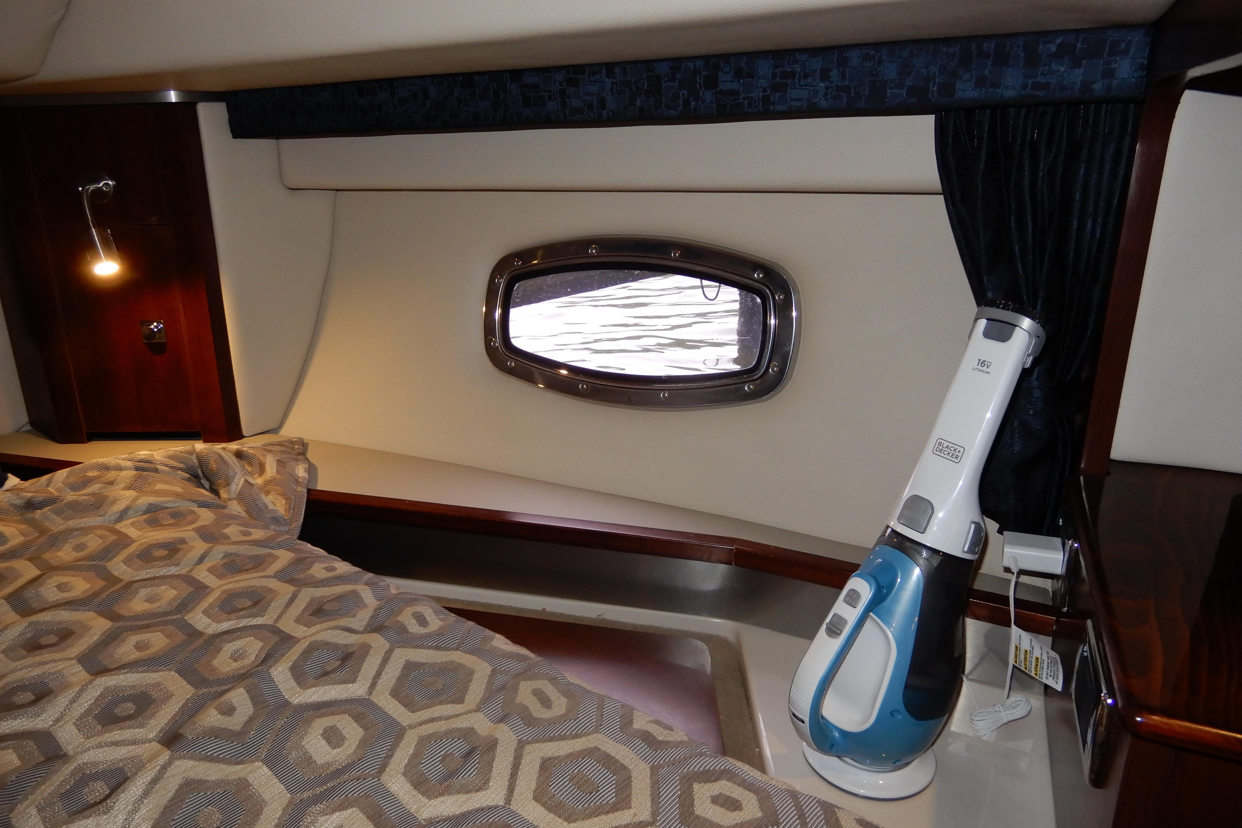 This spacious family cruiser, has ample seating on deck. Cockpit fridge, full camper canvas, at the helm there is GPS, Volvo digital gauges, joystick control and digital throttles. On deck, there is a windlass, and walk through windshield. In the cabin there are two separate sleeping areas, full head and full galley, AC/heat, and more.
