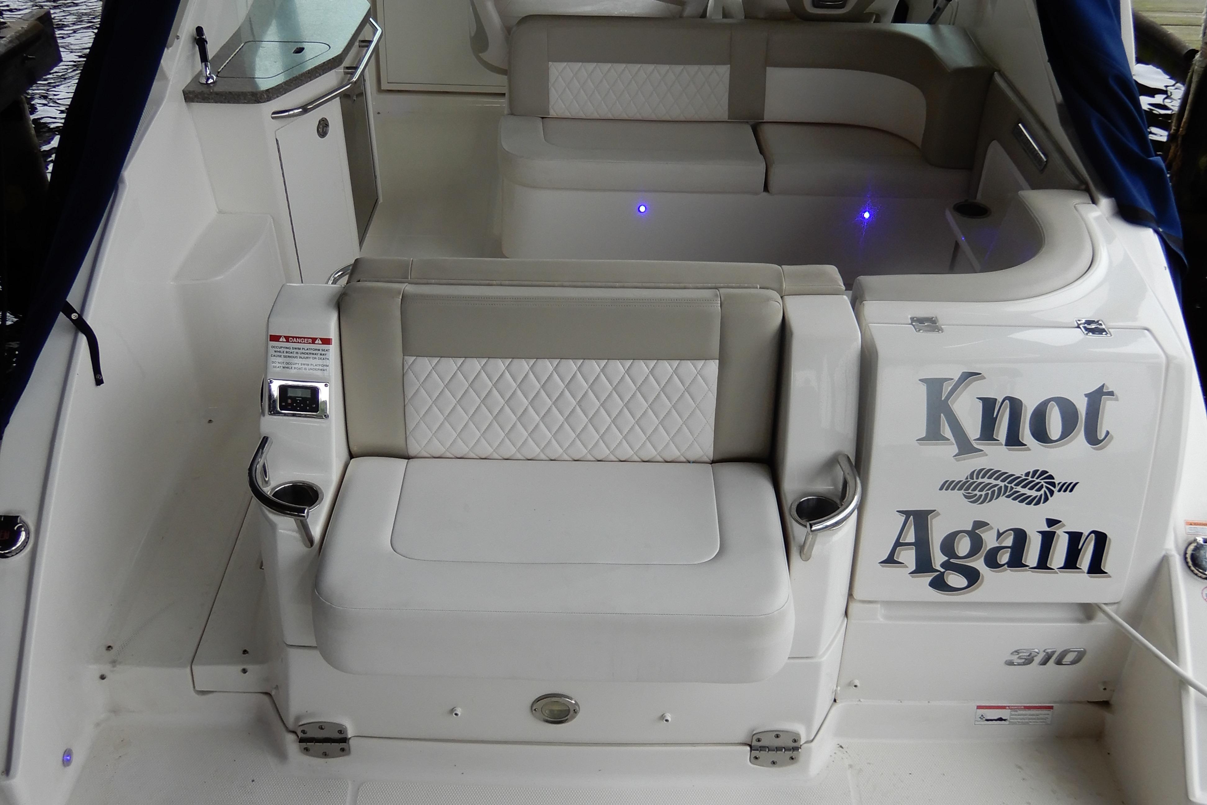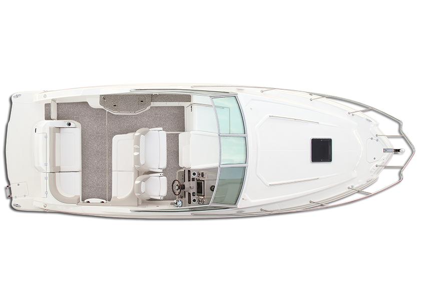 Mix award winning styling, advanced cockpit features, dry-riding performance and a comfort-minded cabin and you've got the fabulous 310 Signature. Chaparral's design excellence shines through with a standard fiberglass hard top that creates a big cruiser feel and all-weather protection. Two cockpit seating options meet every need. The standard design includes a conventional aft couch with a transom storage trunk. The optional cockpit offers boaters fore and aft bench seating that easily converts to a sun lounge.