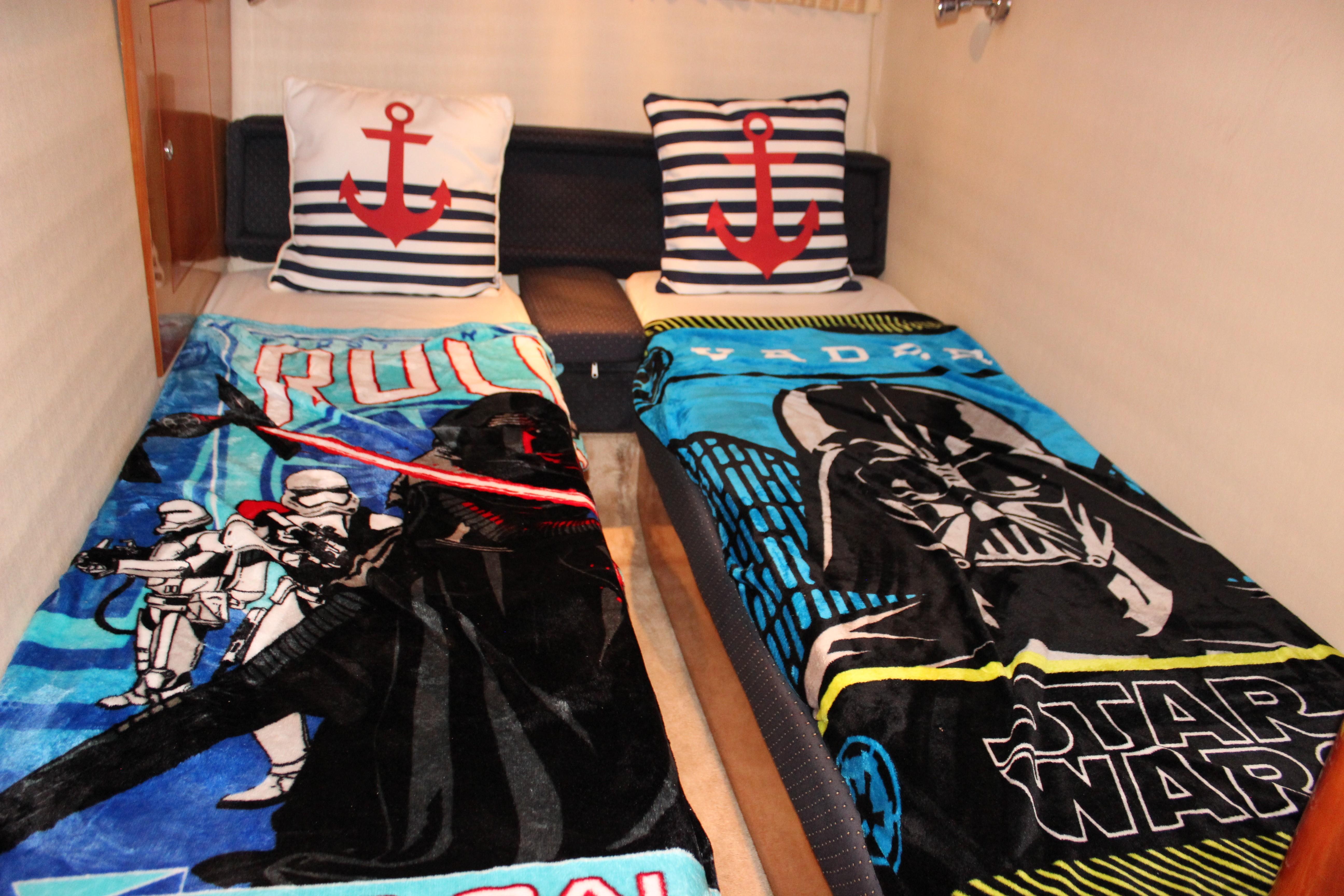 2003 Regal 3860 is fun and fast. Powered with Twin Volvo 8.1. Kohler Gen 7.5KW.  Bow Thruster Raymarine GPS , Ray Marine VHF, Ray Marine Depth Sounder,  Rudder position gauge, Macerator Overboard Discharge System, Hand Craft Cherry Furniture, Cockpit Wet Bar, Canvas Sunpad Cover, Canvas Cockpit Cover. INTERIOR: 2 Private State Rooms, 2 Vacuflush Heads (40 gal. holding tank) with stand up showers, Full Galley & Salon, Corian Countertops, Hardwood Floor, Central Vac, Flatscreen TV, 2 Air Conditioner Units, Surround Sound - DVD - CD, Galley fully furnished, Leathercrest fold out couch with recliners - sleeps 2 additional guests in salon, Built-in coffee maker & Microwave, Electric 2-burner stove, 70 Gallon Fresh Water Tank, Forward head has built-in hair dryer, SALON: wine storage cabinet, removable cherry wood dining table, Forward stateroom features a queen size bed with an inner spring mattress, aft cabin features 2 single beds that convert to queen size bed COCKPIT - HELM: Full navy canvas with additional cockpit canvas cover, Cockpit table converts to double berth, 4-Speaker Stereo - CD, Extended Swim Platform.